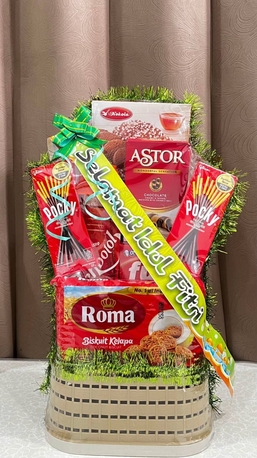 FREE Keranjang, Pita & kartu Ucapan. Isi: Mangkuk (2pcs), Pocky (2pcs), Biskuit Roma Cream, Syrup 1 Botol.